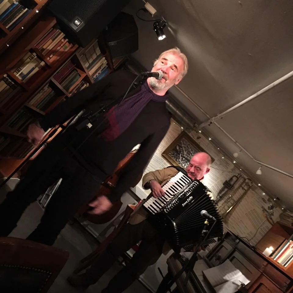 Synger Pappas viser med den eminente Per Olaf Green på Antikvariatet i Trondheim.
